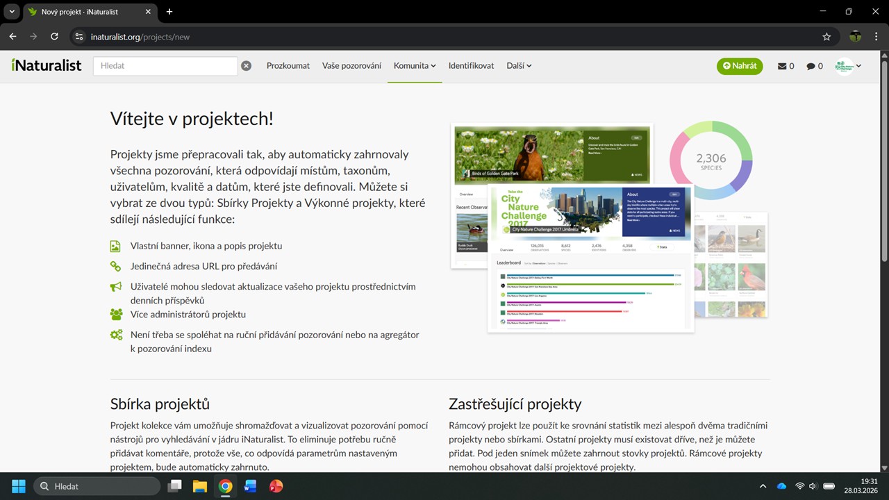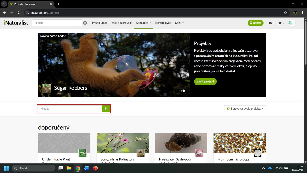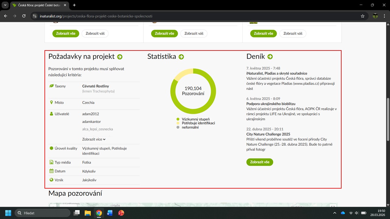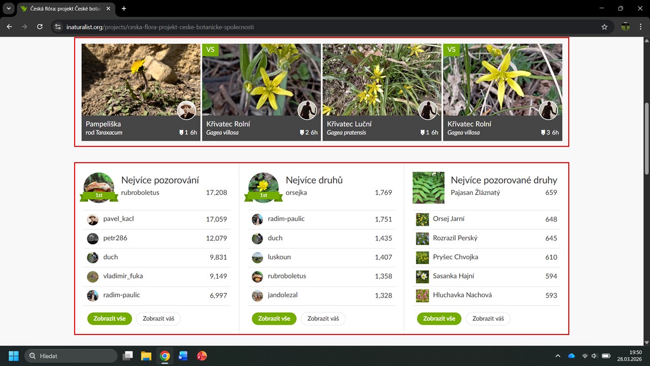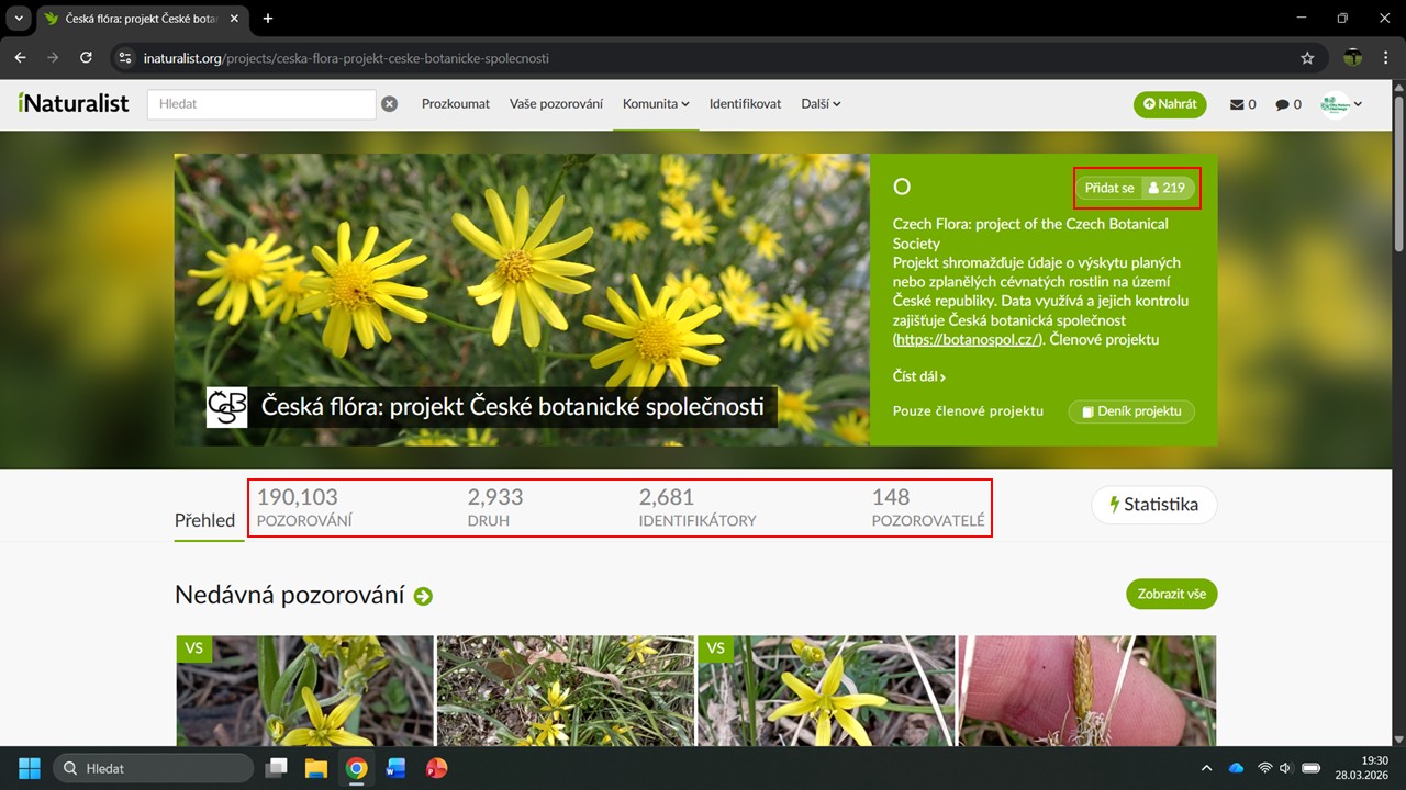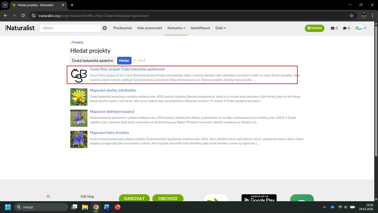 iNaturalist nám navrhne několik projektů, ve kterých byla Česká botanická
