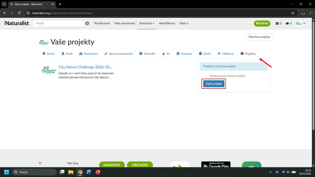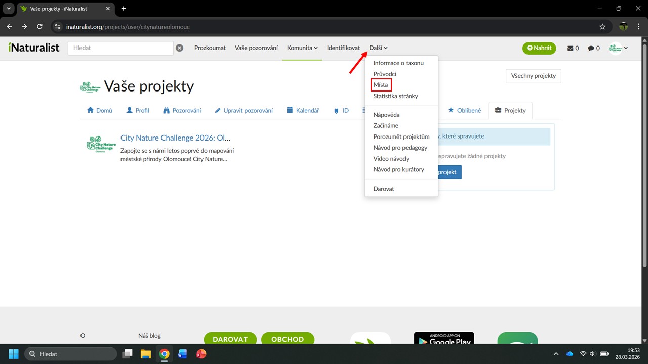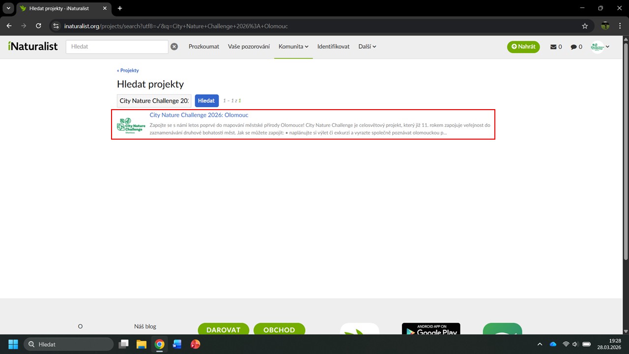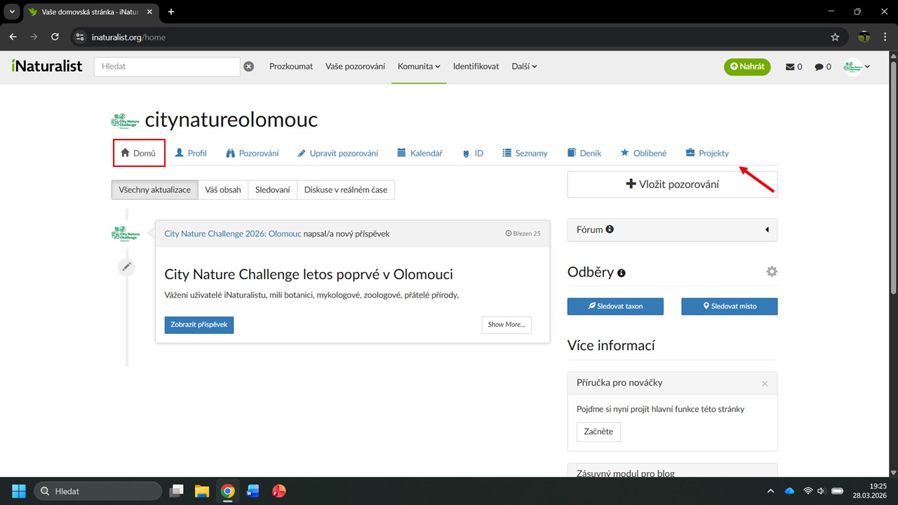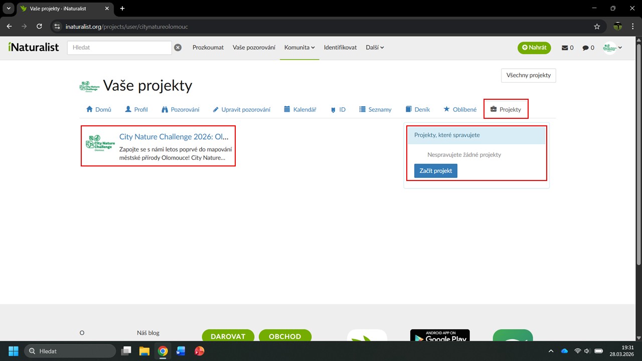 iNaturalist nám navrhne několik projektů, ve kterých byla Česká botanická