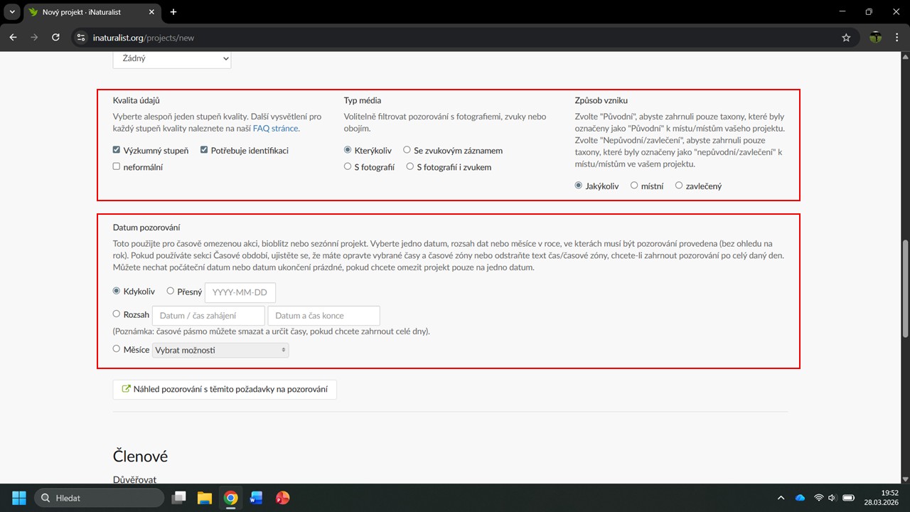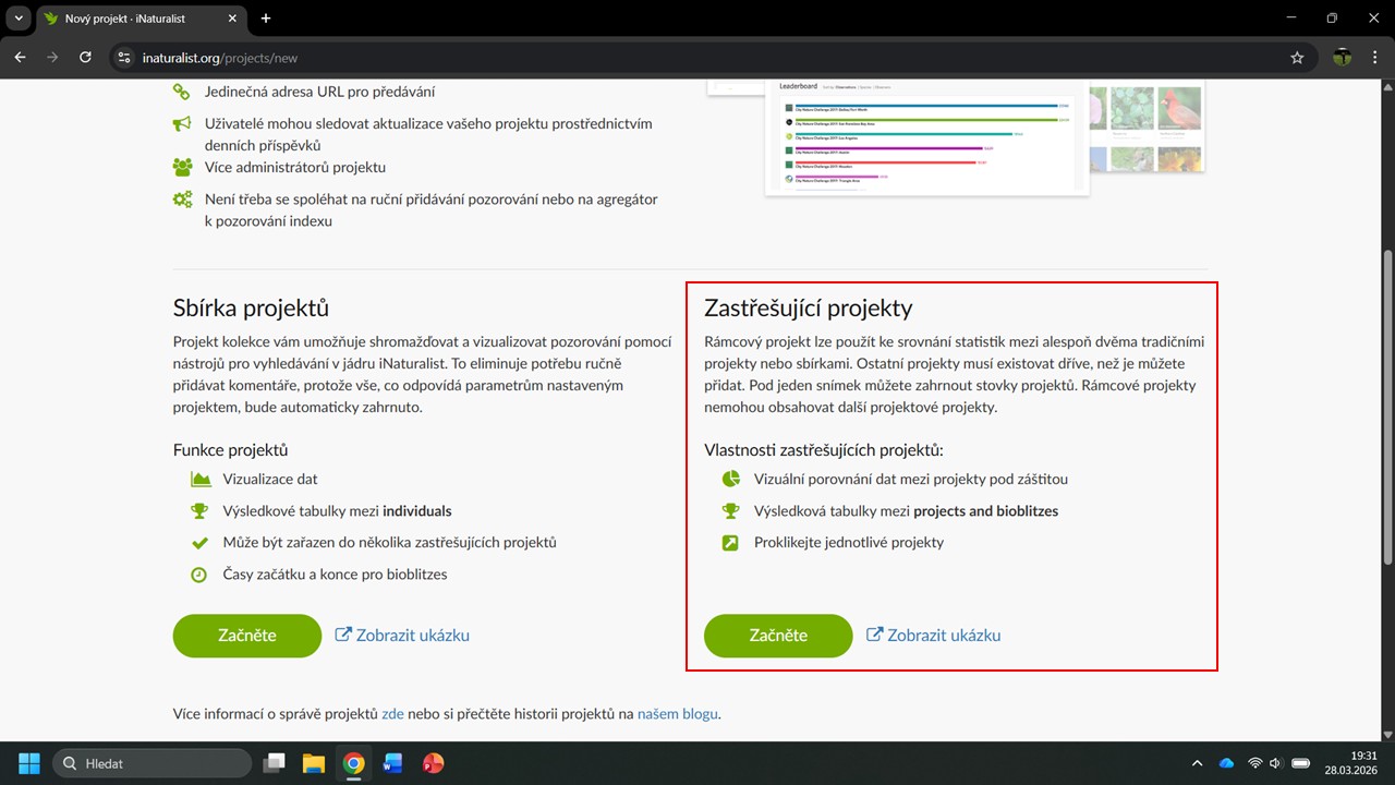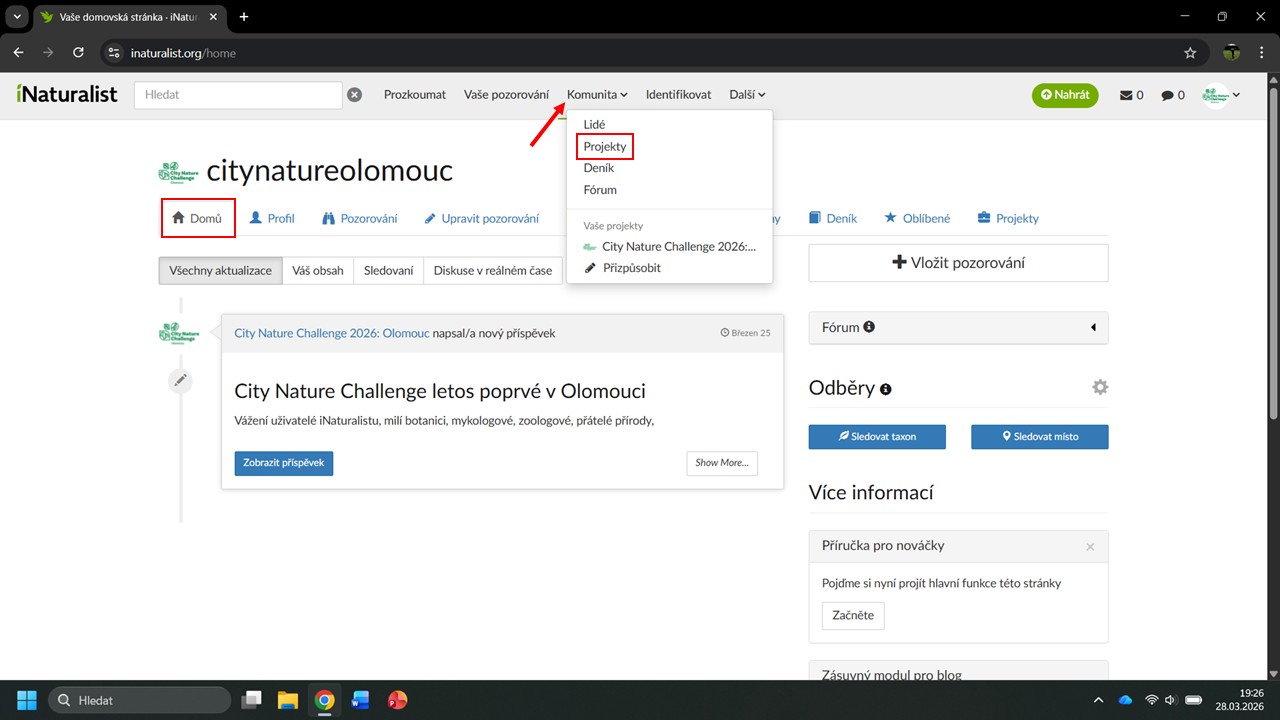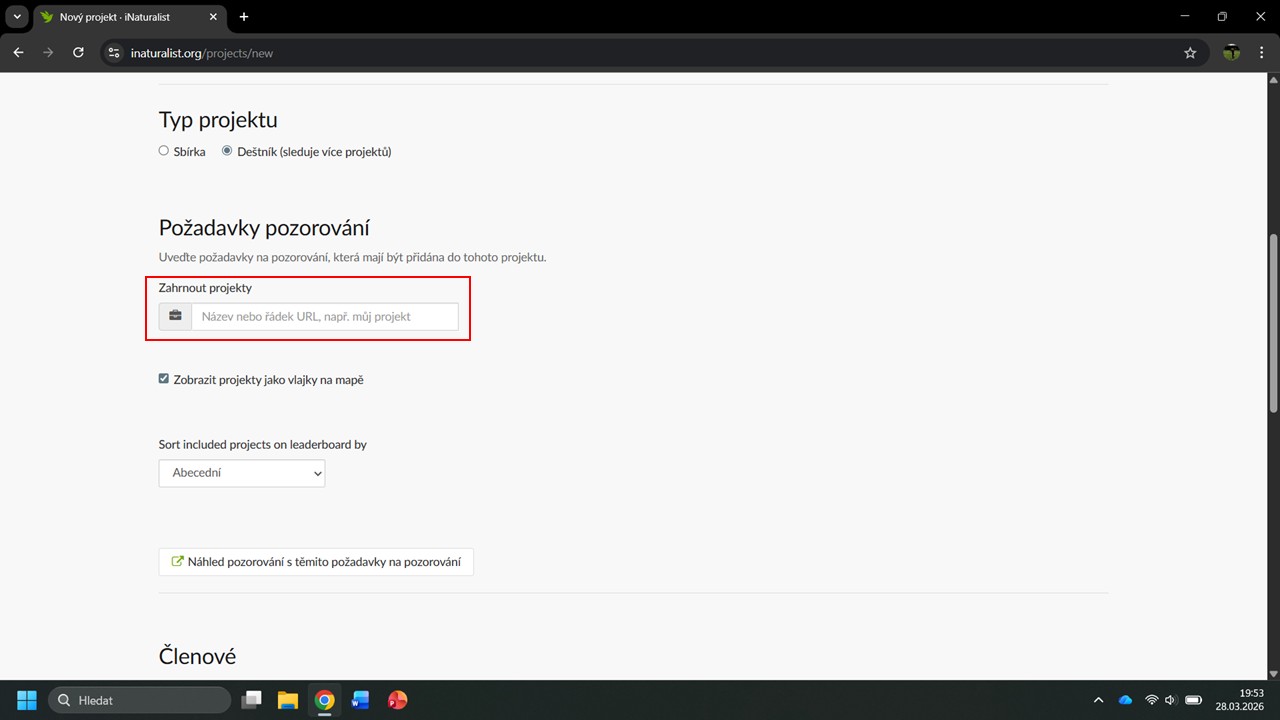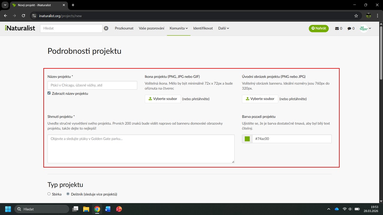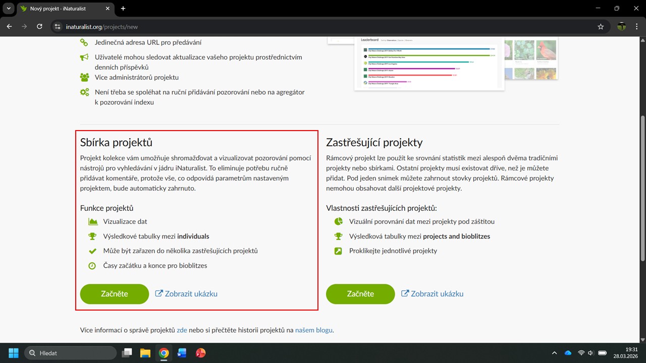 iNaturalist nám navrhne několik projektů, ve kterých byla Česká botanická