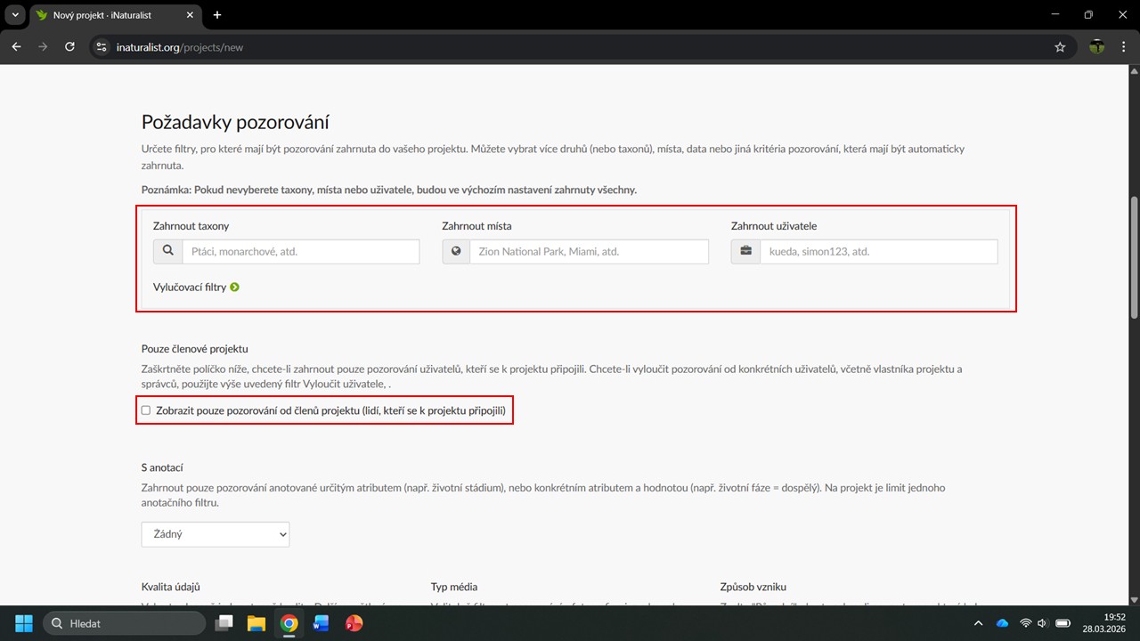 všechna pozorování splňující stanovené podmínky, nebo jen ty od uživatelů,
