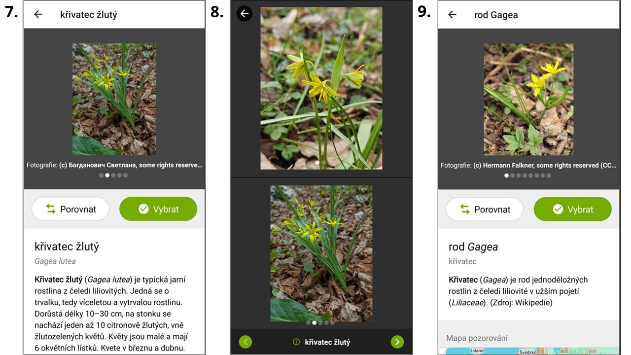 Před potvrzením identifikace lze nabízené taxony rozkliknout a zjistit si o