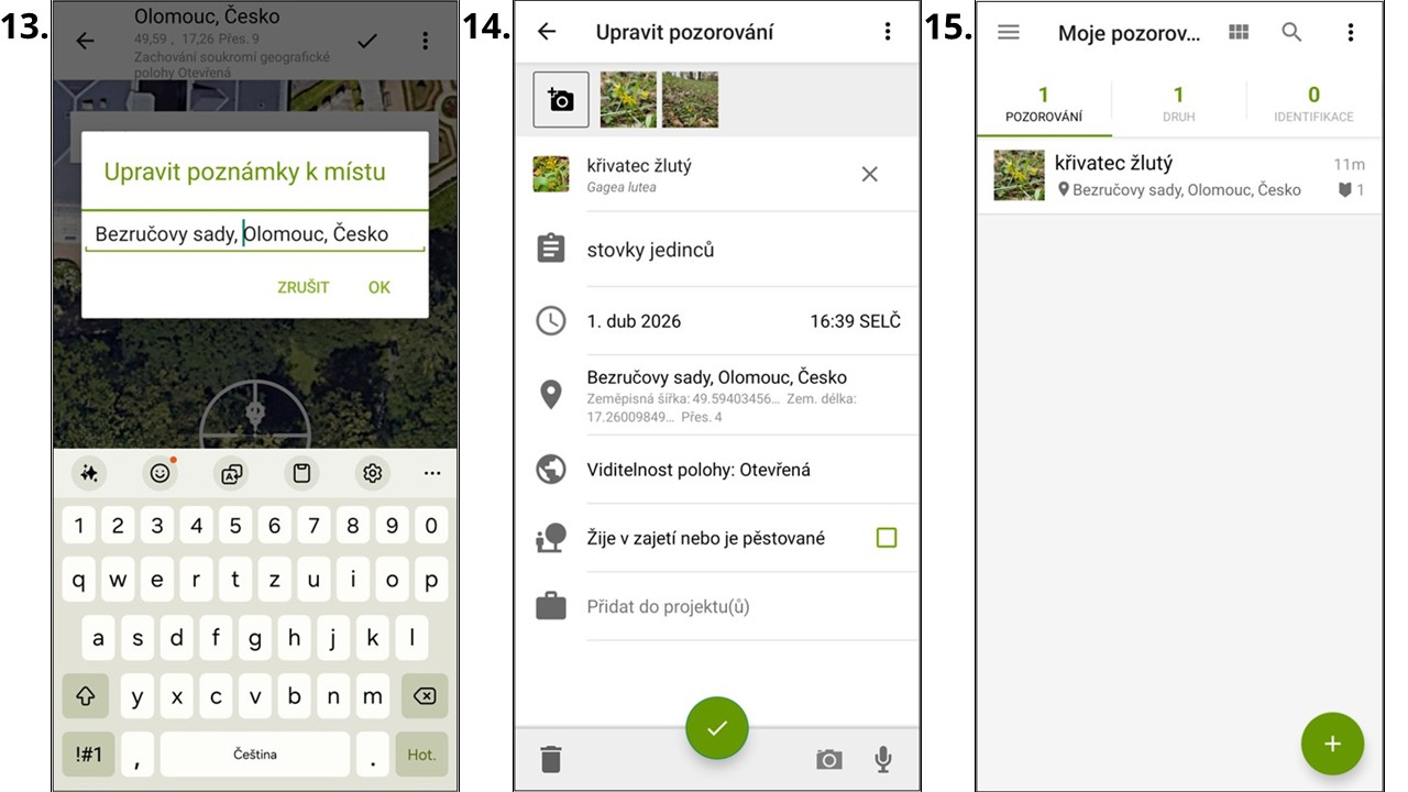 Pokud z fotky není patrné, kolik se na lokalitě nachází jedinců, je vhodné do Poznámky k pozorování připsat údaje o